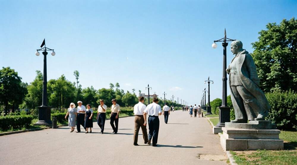 Сталино. Памятник Сталину в парке культуры и отдыха. (Уже не парк Постышева, ещё не парк Щербакова). 1938 год. Памятник стоял в начале центральной аллеи, которая начиналась со входа в парк на будущей улице Стадионной. Там был главный вход в парк, так как моста ещё не было. Не путать с главной... Далее